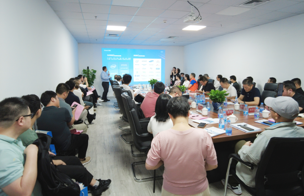 南山区工商联党组书记乐丽华、人工智能产业链党委书记&深圳市人工智能产业协会执行会长范丛明带领人工智能产业协会的40多位企业家莅临Gooxi参加了此次活动,Gooxi董事长赵士亮、副总裁张思栋、产品营销总监王飞宇等领导热情接待了拜访领导及企业家。