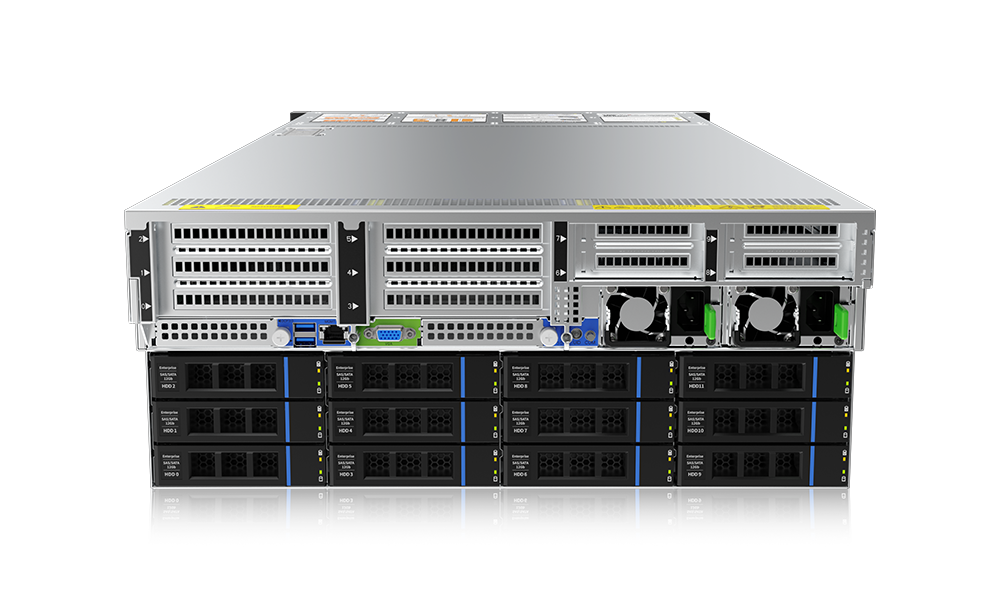 | 存储 | 前置支持 24 个热插拔 2.5”SATA/SAS 硬盘 后置支持 12 个热插拔 3.5”SATA/SAS 后 IO 选配支持 2 个 2×2.5”SATA/SAS 或 U.2 硬盘模组 |