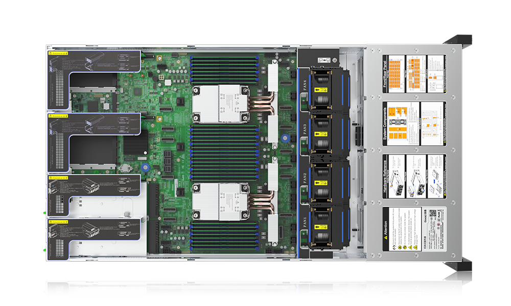 | PCIe扩展 | PCIe 扩展形态 6x PCIe 全高槽位、4x PCIe 半高槽位,2x OCP 3.0 槽位 PCIe 扩展规格 Riser1/2: 1x 全高 PCIe 5.0 x16、2x 全高 PCIe 5.0 x8、2x 全高 PCIe 5.0 x16 Riser3/4: 2x 半高 PCIe 5.0 x8、1x 半高 PCIe 5.0 x16 OCP: 2x OCP 3.0 (PCIe 5.0 x8) |
